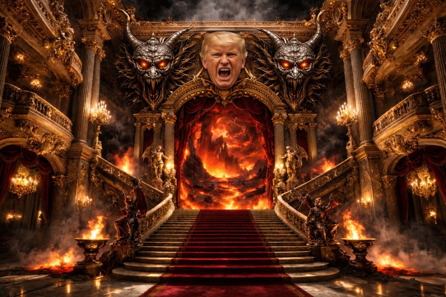 Consequently, dissent and criticism of the individual are targeted as treason against the state. He treats the People's White House as his own personal property, rebuilding it into a monument to his corruption. He tore down the east wing, paved over the Rose Garden, builds monuments to himself, puts his name on tax refunds, and tarnished the once-venerable Kennedy Center with his name. He sells American citizenship and golden visas with his face and signature on them.